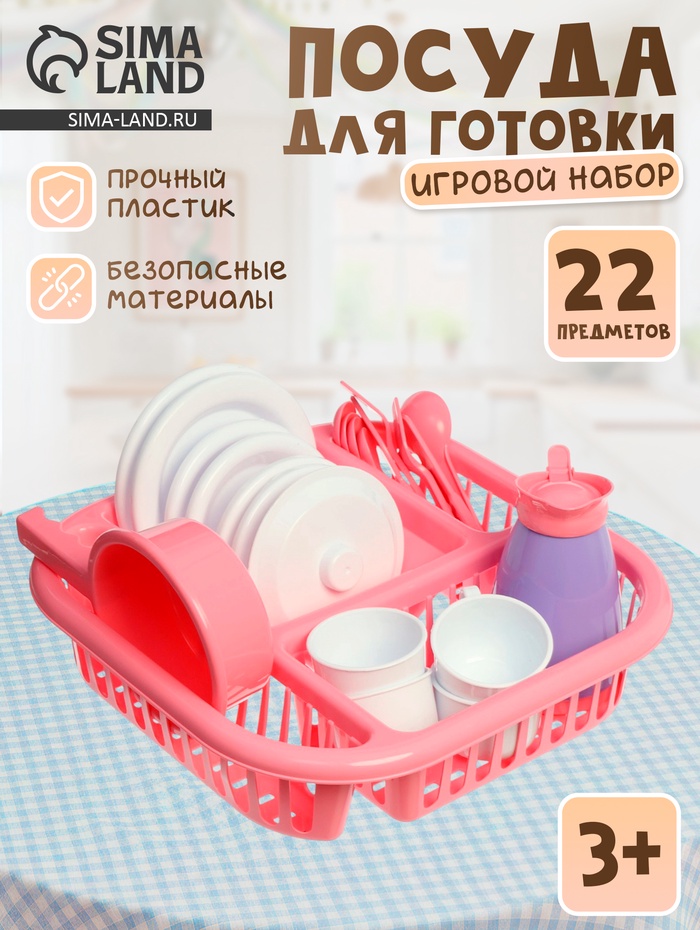 Набор детской посуды с сушилкой — идеальная мини-кухня для маленького шеф-повара. Яркая розово-белая посуда, аккуратная сушилка и продуманные детали делают игру реалистичной и увлекательной. Ребёнок может «накрывать стол», «мыть посуду», сортировать её в сушилке и повторять действия взрослых — а значит, развивать фантазию, мелкую моторику и навыки ролевой игры.