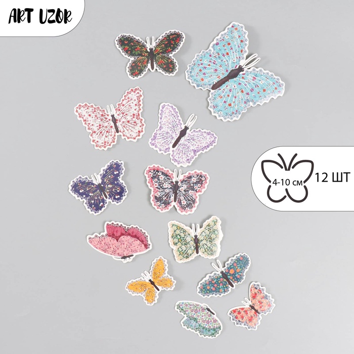 Набор наклеек для декора «Арт Узор. Бабочки. Цветочки. Ситец», картон, 12 шт., h=4-10 см