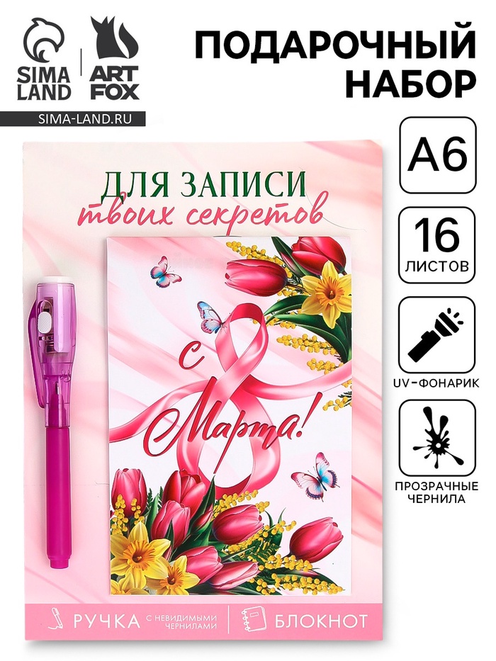 Подарочный набор,: волшебная ручка и блокнот «С 8 марта»
