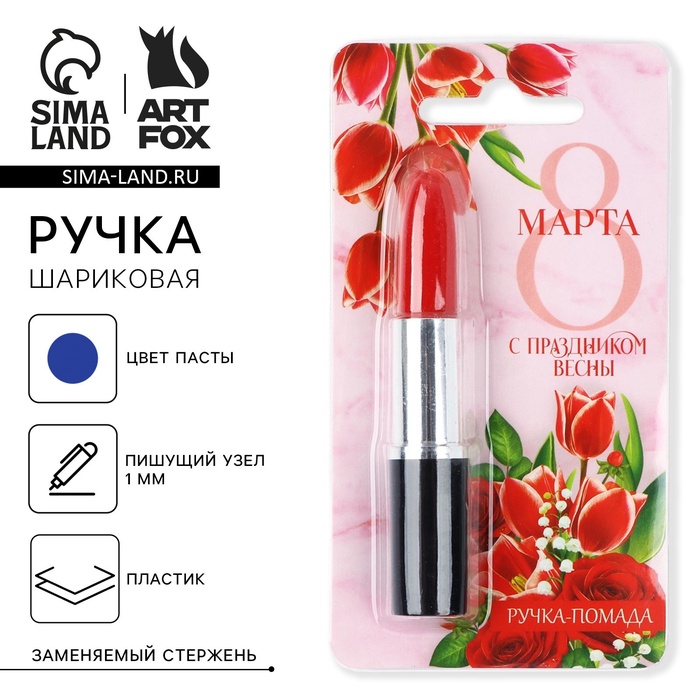 Ручка прикол шариковая помада «С праздником весны. 8 марта», на подложке