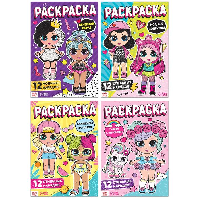 Раскраски для девочек набор «Стильные девчонки», 4 шт. по 16 стр., А4