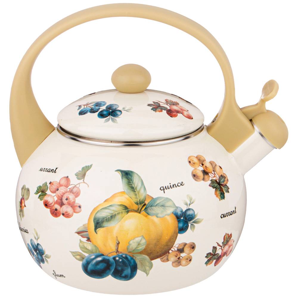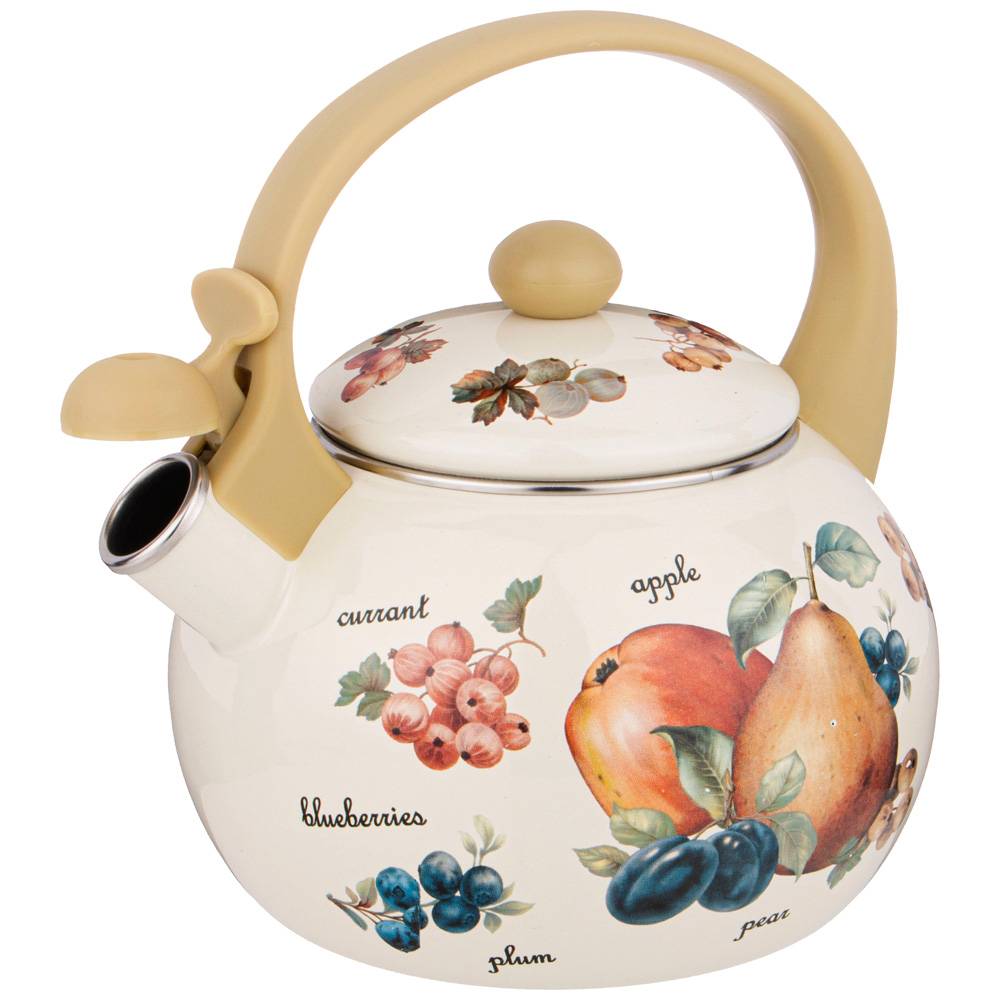 ЧАЙНИК AGNESS ЭМАЛИРОВАННЫЙ СО СВИСТКОМ, СЕРИЯ "ФРУКТЫ" 2,2Л, ИНДУКЦИОННОЕ ДНО