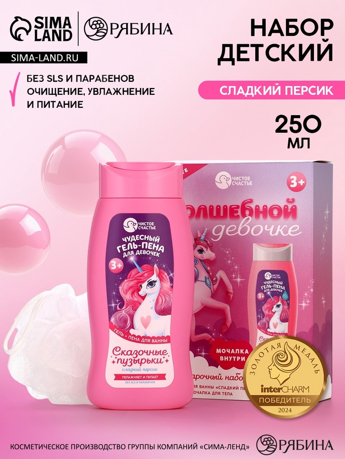 Подарочный набор детский «Волшебной девочке», гель-пена 250 мл, мочалка, Чистое счастье