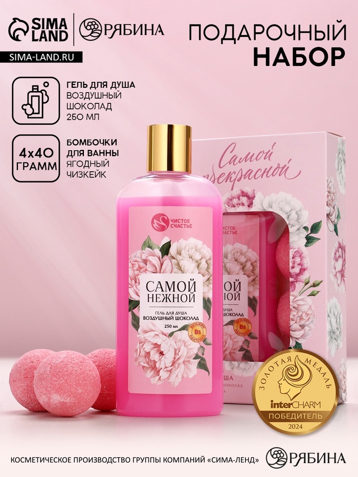 Подарочный набор «прекрасной», гель для душа, 250 мл и бомбочки для ванны, 4×40 Чистое счастье