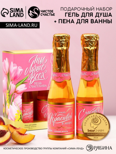 Подарочный набор «Самой красивой»: гель для душа и пена для ванны шампанское, 2×250 мл, Чистое счастье
