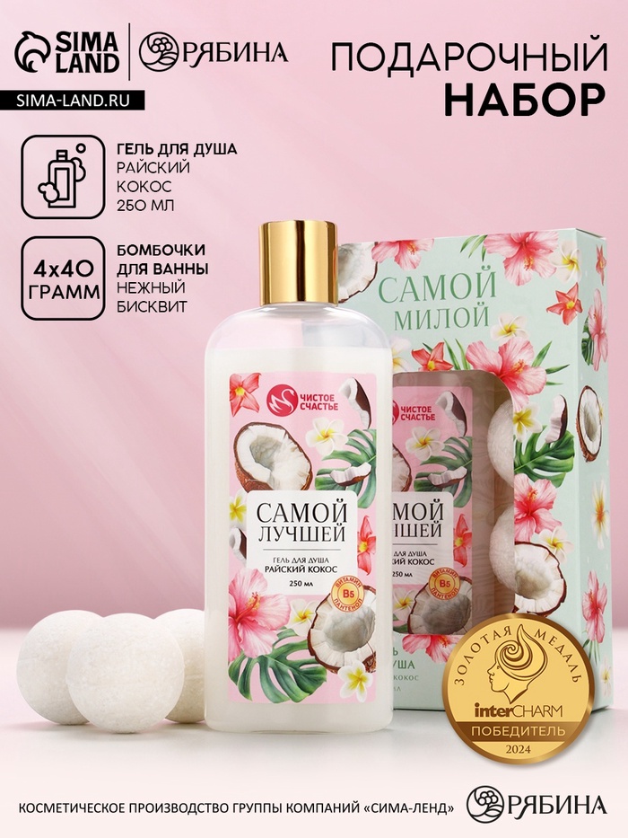 Подарочный набор «Самой милой», гель для душа, 250 мл и бомбочки для ванны, 4×40 Чистое счастье