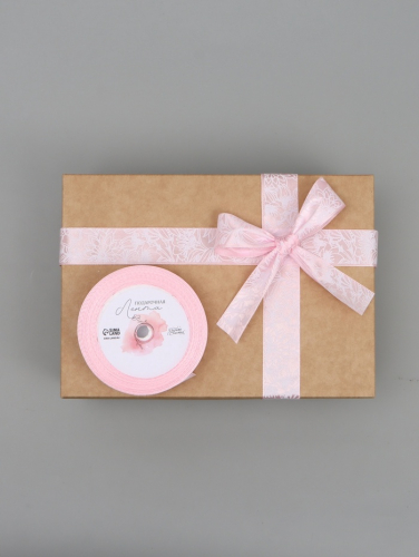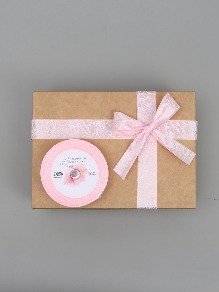 Лента атласная «Цветы», 25 мм × 18 ± 1 м, цвет розовый
