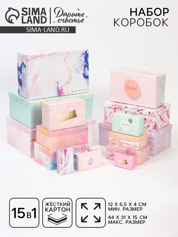 Набор коробок 15 в 1, упаковка подарочная, «Текстурный», 12×6.5×4 см - 46.5×30×17.5 см