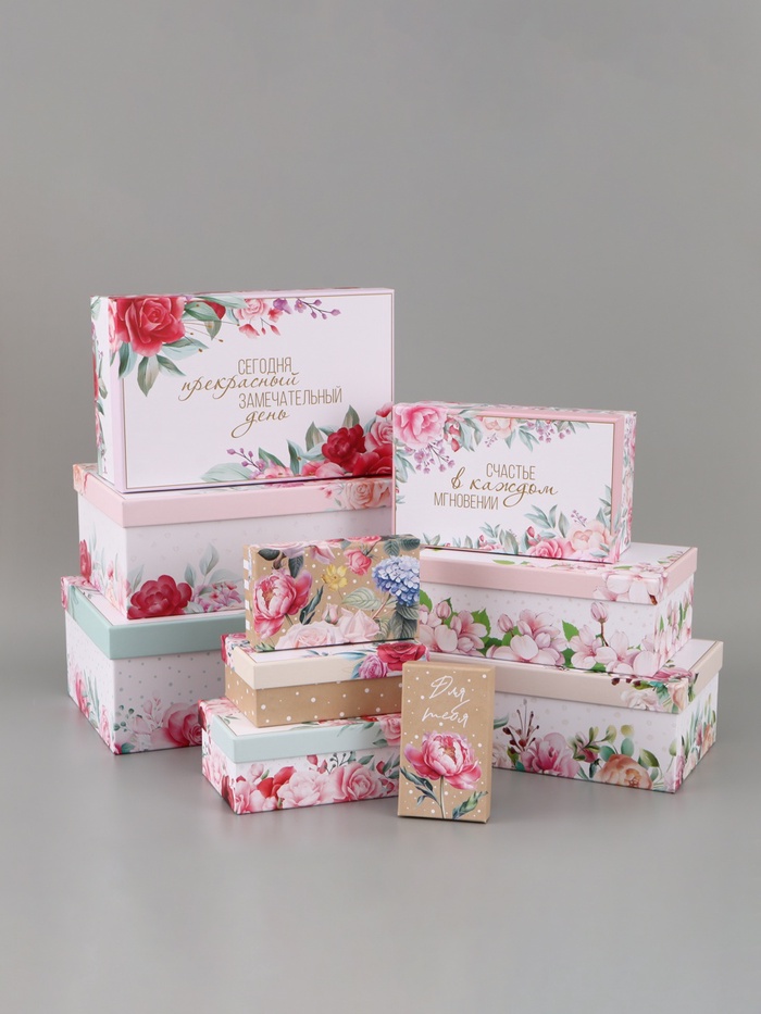 Набор коробок прямоугольных 10 в 1 «Цветочный», 30×19×11 - 12×6.5×4 см