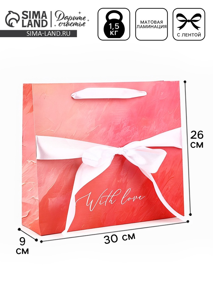 Пакет ламинированный с лентой «С любовью», M 30×9×26 см