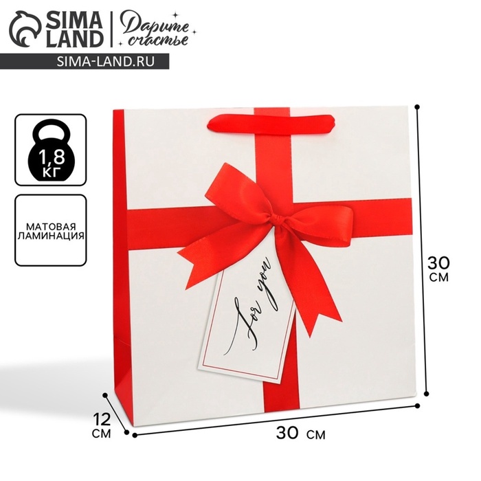 Пакет подарочный ламинированный квадратный, упаковка, For You, 30×30×12 см