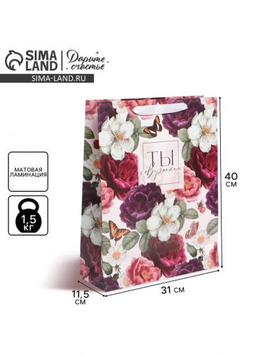 Пакет подарочный ламинированный, упаковка, «Цветы», L 31×40×11.5 см