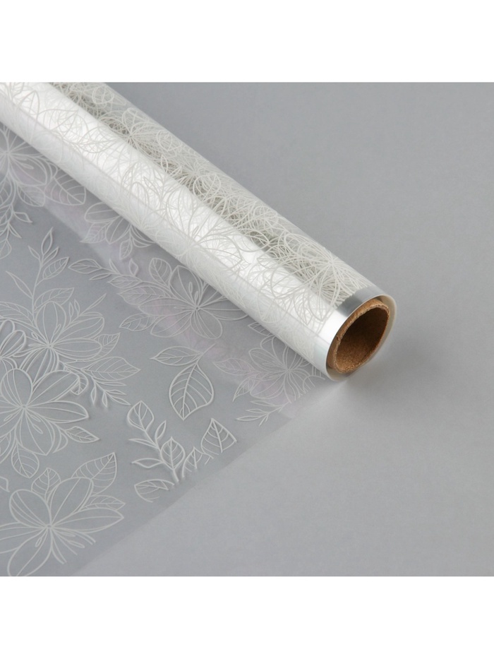 Плёнка для цветов упаковочная глянцевая прозрачная «Цветы», белая, 0.6×10 м