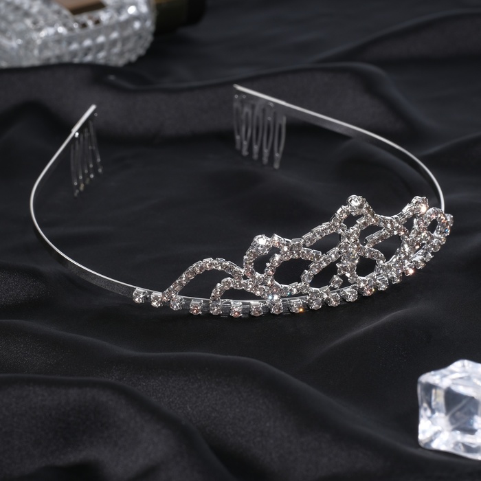* Изысканный дизайн: Ажурный узор в виде гравировки «грация» высотой 4 см создает эффект легкого кружева из металла. Диадема выглядит объемно и богато, при этом оставаясь невесомой и удобной для ношения.