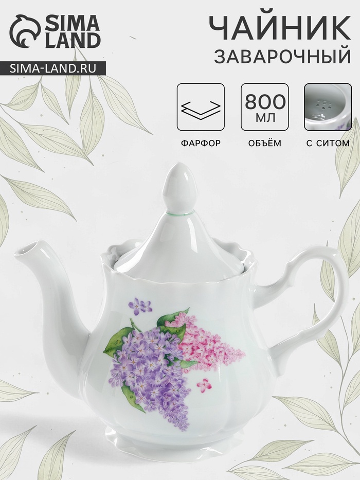 Чайник заварочный Добрушский завод «Сирень», 800 мл, фарфор, белый