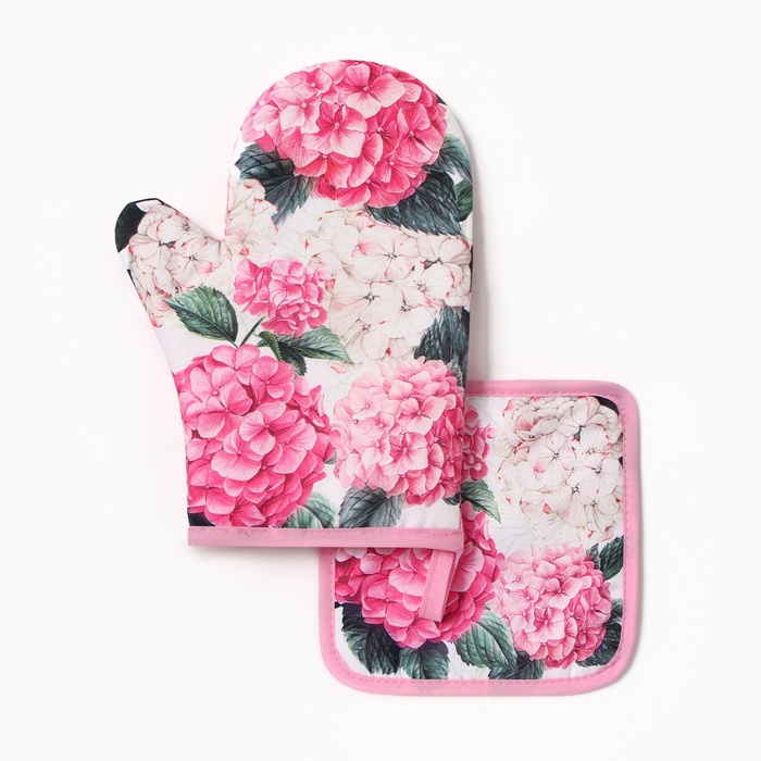 Кухонный набор «Гортензия»: варежка-прихватка 20×27 см, прихватка 17×17 см