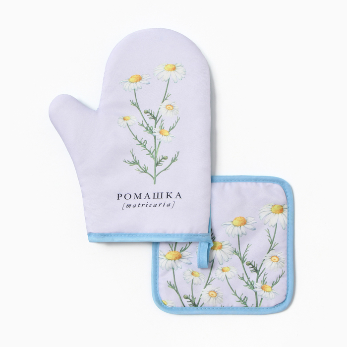 Кухонный набор «Ромашки» варежка-прихватка 20×27 см, прихватка 17×17 см
