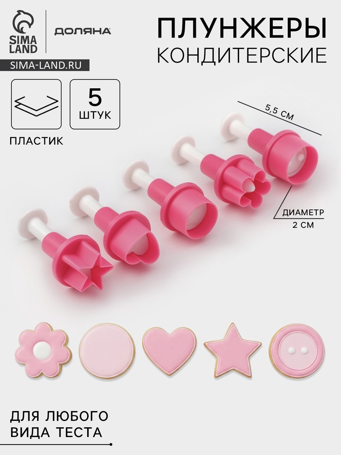 Плунжеры кондитерские Доляна «Праздник», набор 5 шт., пластик, розовые
