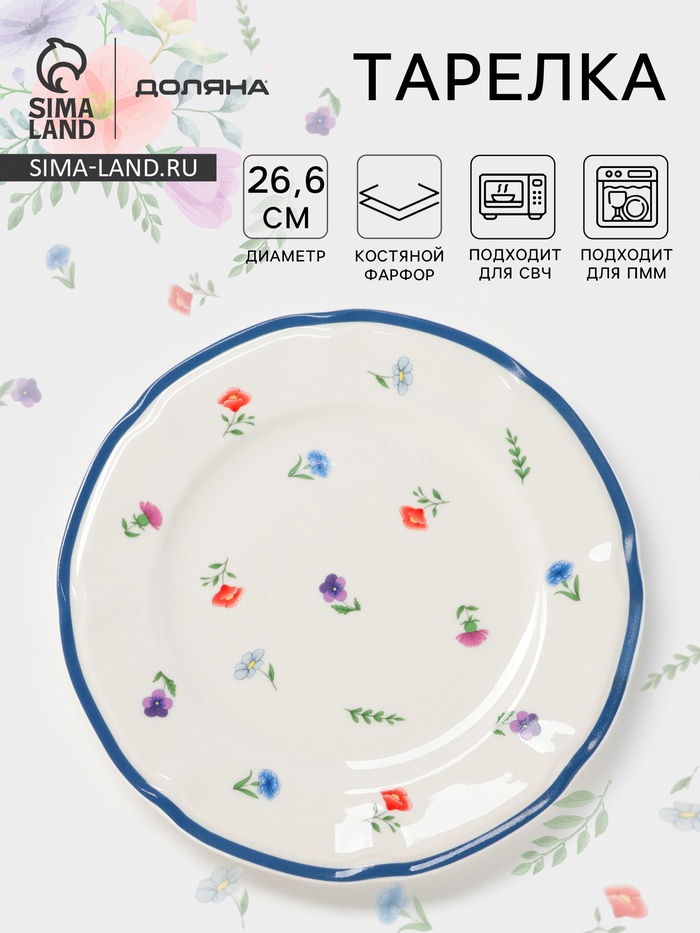 Изготовленная из нового костяного фарфора, эта тарелка диаметром 26.6 см идеально подходит для сервировки основных блюд и десертов. Её цветочный рисунок придает неповторимый шарм любому столу. Она станет украшением вашей кухни и особенным акцентом при создании атмосферы романтики.