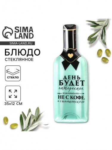 Тарелка стеклянная в форме бутылки «День будет интереснее» — это стильный и функциональный предмет посуды, который станет отличным дополнением к вашему интерьеру или подарком для друзей и близких.