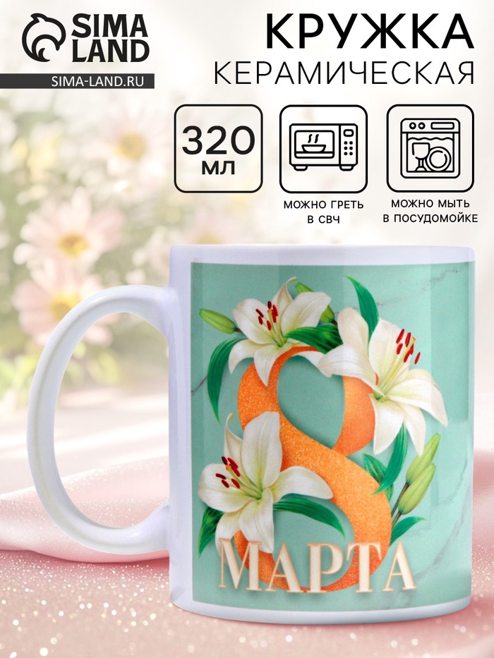 Керамическая кружка «8 марта» — это качественный и удобный аксессуар для подачи различных напитков.