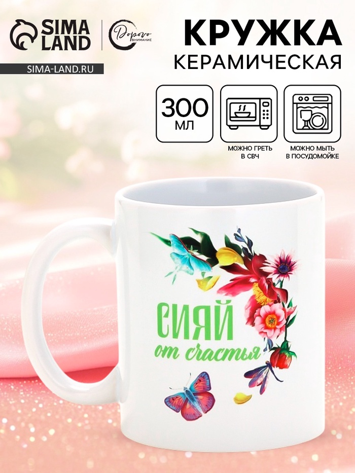 Керамическая кружка «Сияй от счастья» — не пафосное признание и не шаблонный комплимент, а тихое, вдумчивое напоминание: быть прекрасной — не про внешность, а про способность оставаться собой, даже когда день идёт наперекосяк.