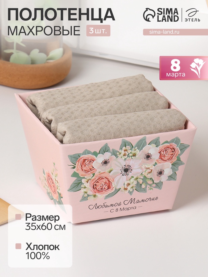 Набор полотенец «Этель. Любимой мамочке», 35×60 см - 3 шт., 100% хлопок