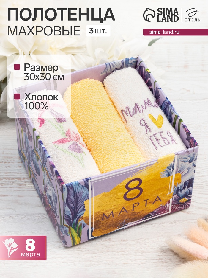 Набор полотенец «Мама» 30×30 см-3 шт., 100% хлопок 340 г/м²