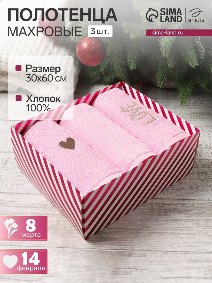 Полотенца махровые «Этель» LOVE, 3 шт., 30×60 см, хлопок 100%, розовые