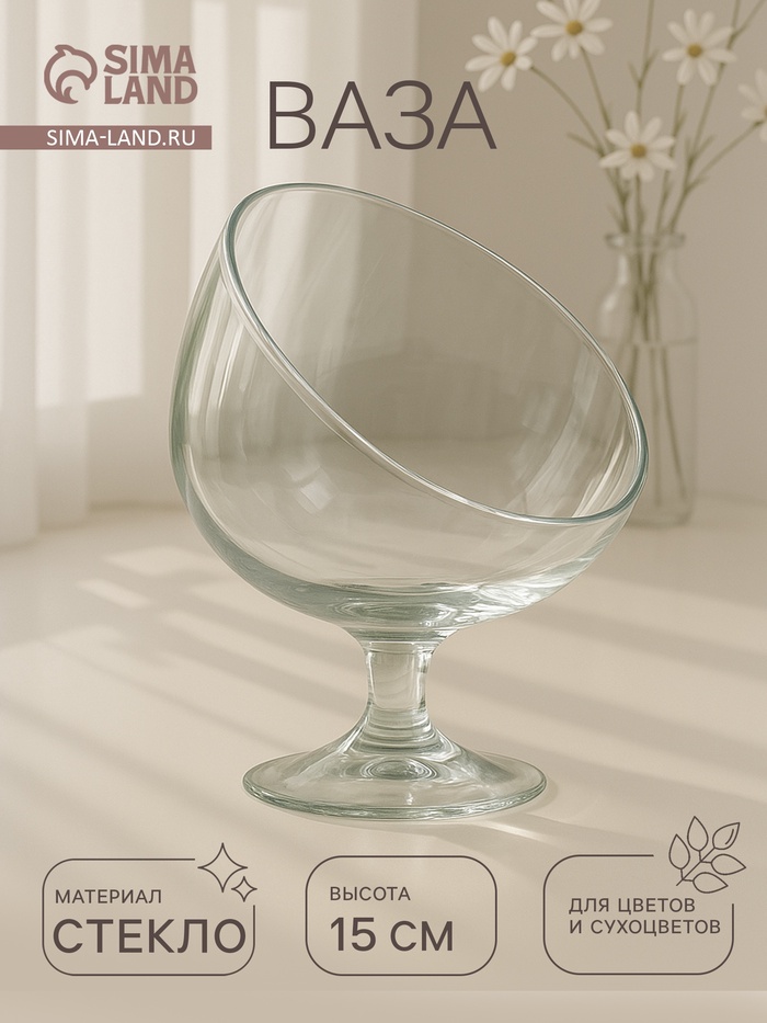Воплотите в жизнь самые смелые дизайнерские идеи по украшению дома! Ваза из прозрачного стекла — основа для вашего творчества. Насыпьте в неё цветной песок, камушки, ракушки или другой декор. Создавайте восхитительные интерьерные композиции из цветов и зелени.