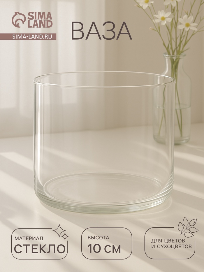 Воплотите в жизнь самые смелые дизайнерские идеи по украшению дома! Ваза из прозрачного стекла — основа для вашего творчества. Насыпьте в неё цветной песок, камушки, ракушки или другой декор. Создавайте восхитительные интерьерные композиции из цветов и зелени.