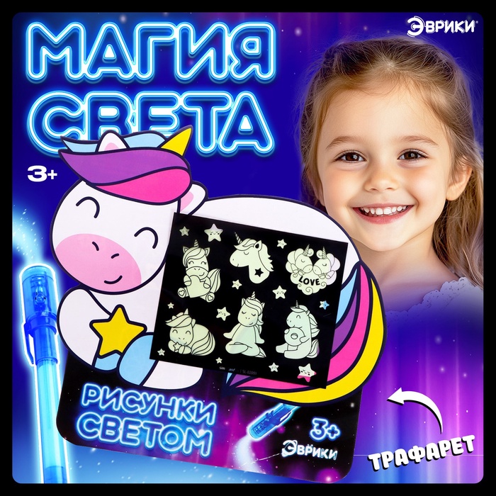 Набор для рисования светом «Единорог», А5, ручка с фонариком и невидимыми чернилами