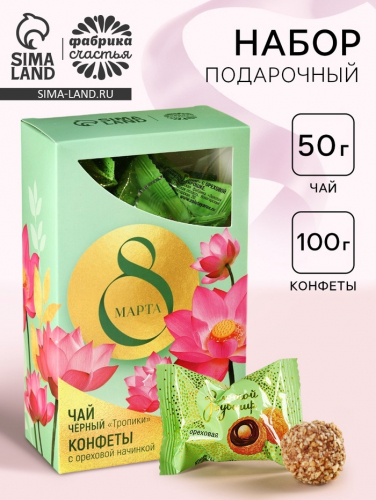 Подарочный набор «8 марта»: чай 50 г, конфеты 100 г