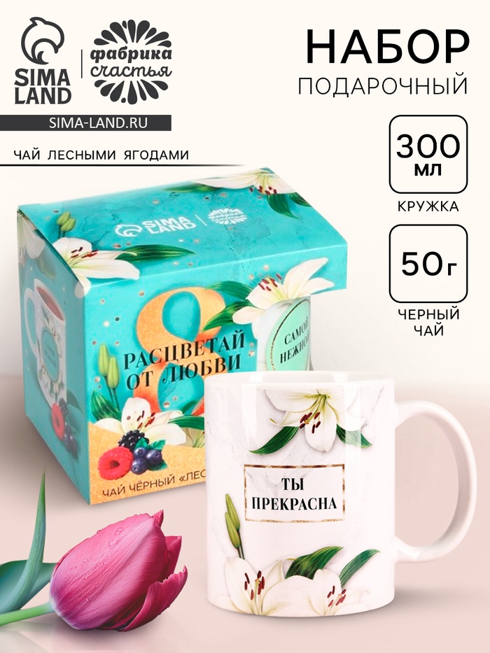 Подарочный набор «Расцветай от любви. 8 марта», чай чёрный с лесными ягодами 50 г, кружка
