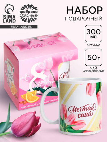 Подарочный набор «С 8 Марта»: чай апельсин с шоколадом, 50 г, кружка 300 мл