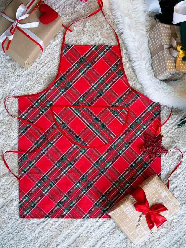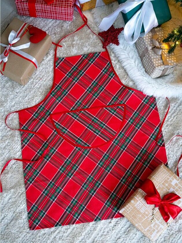 Фартук с карманом "Шотландская клетка" рогожка хлопок 100%