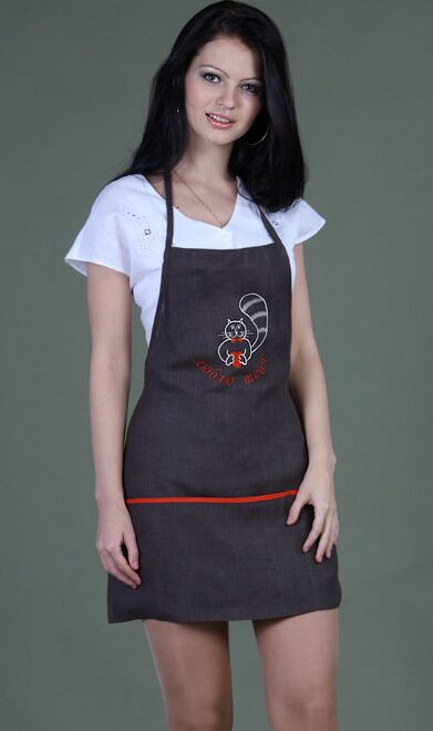 Женский льняной фартук - сувенир с "милой" вышивкой и надписью "Люблю тебя"