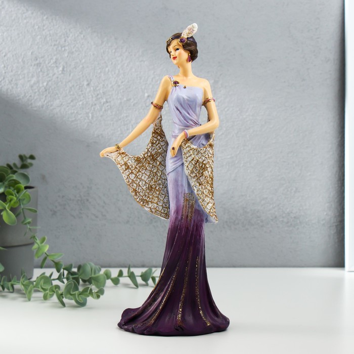 Фигура полистоун «Леди в сиренево-фиолетовом платье с накидкой», 13×9×31.5 см