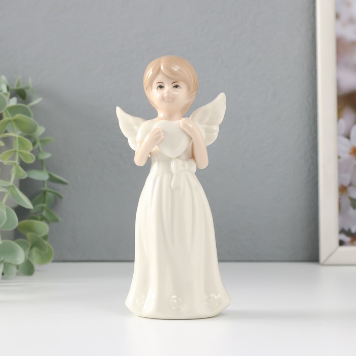 Фигурка керамика «Девочка-ангел в белом платье с сердцем в руках», 6.6×5×15.7 см