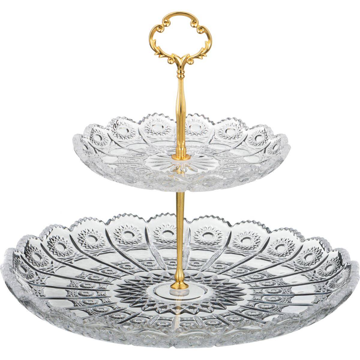 ФРУКТОВНИЦА 2-Х ЯРУСНАЯ "MUZA CRYSTAL" ДИАМЕТР=18/30 СМ. ВЫСОТА=28,5 СМ. (КОР=6ШТ.)