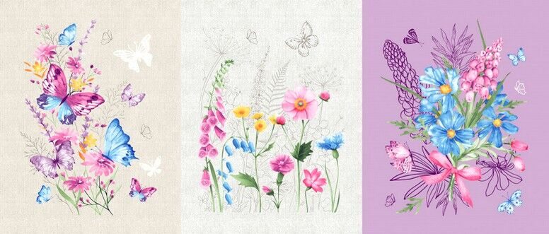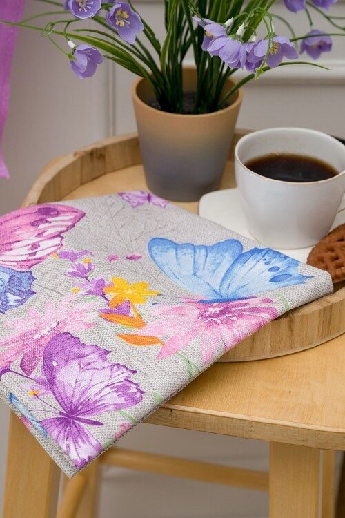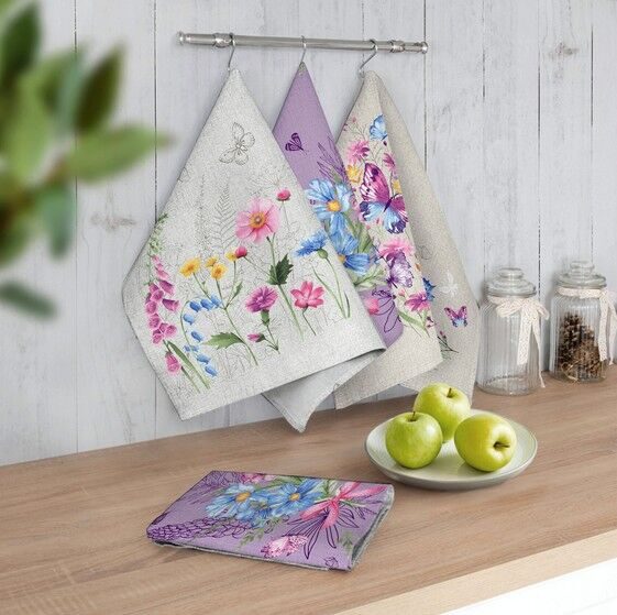 К-т полотенец "Бабочки и цветы" 50*60 см. - 3 шт. рогожка хлопок 100%