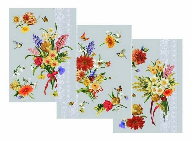 К-т полотенец "Цветы для любимых" 50*60 см. - 3 шт. вафля хлопок 100%