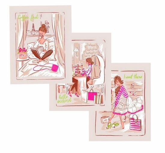 К-т полотенец "Девочки" 50*60 см. - 3 шт. вафля хлопок 100%