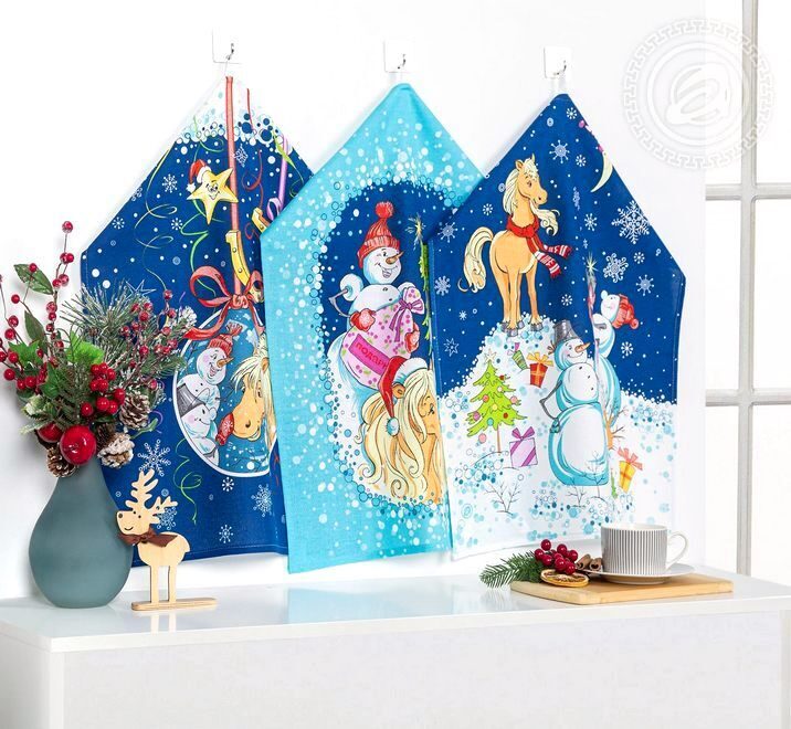 К-т полотенец "Каникулы" 50*60 см. - 3 шт. рогожка хлопок 100%