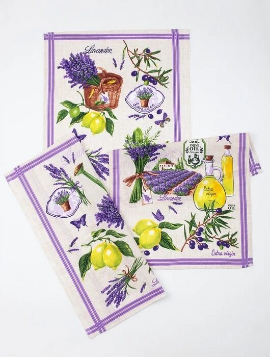 К-т полотенец "Лавандовый прованс" 50*60 см. - 3 шт. рогожка хлопок 100%