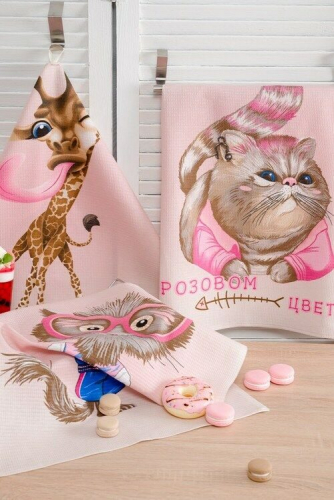 К-т полотенец "Лиса-колбаса" 50*60 см. - 3 шт. вафля хлопок 100%