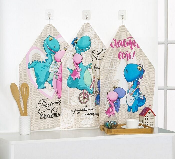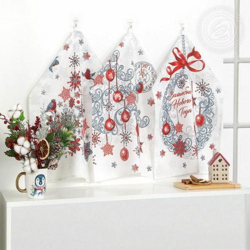 К-т полотенец "Мое счастье" 50*60 см. - 3 шт. рогожка хлопок 100%