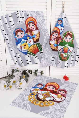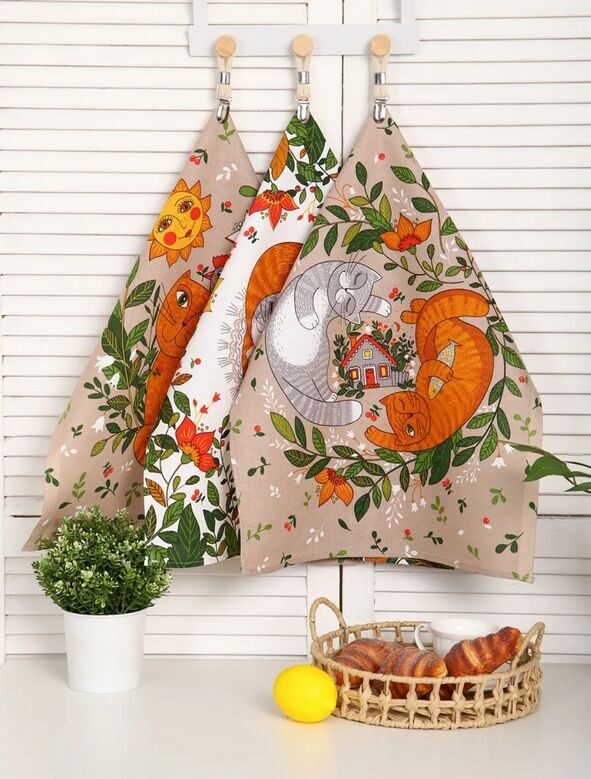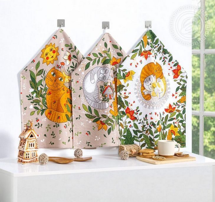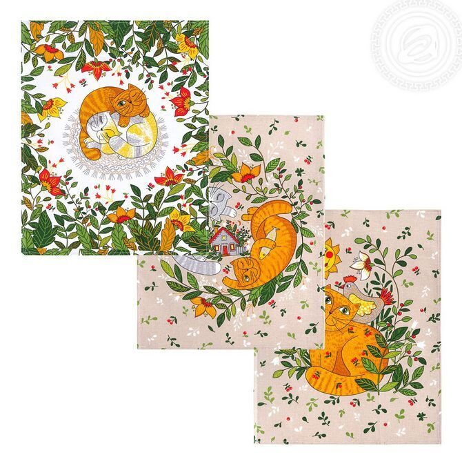 К-т полотенец "Мурлыка" 50*60 см. - 3 шт. рогожка хлопок 100%