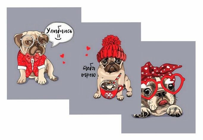 К-т полотенец "Пёсели" 50*60 см. - 3 шт. рогожка хлопок 100%
