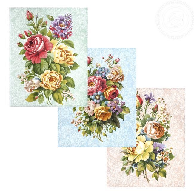 К-т полотенец "Пионы" 50*60 см. - 3 шт. рогожка хлопок 100%